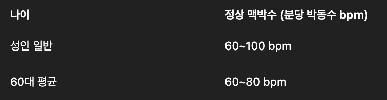 ❤️ 60대 정상 맥박수는 몇일까요?